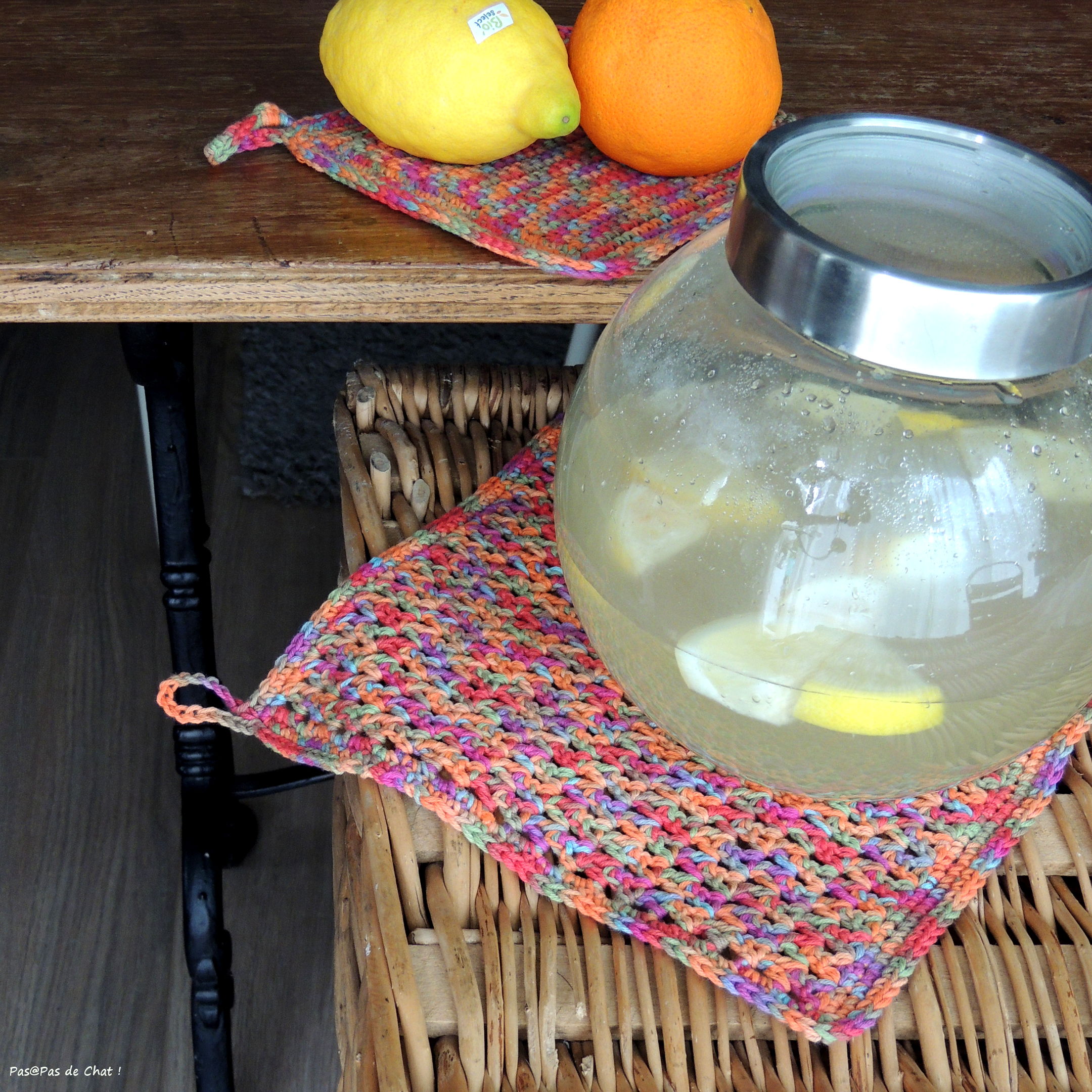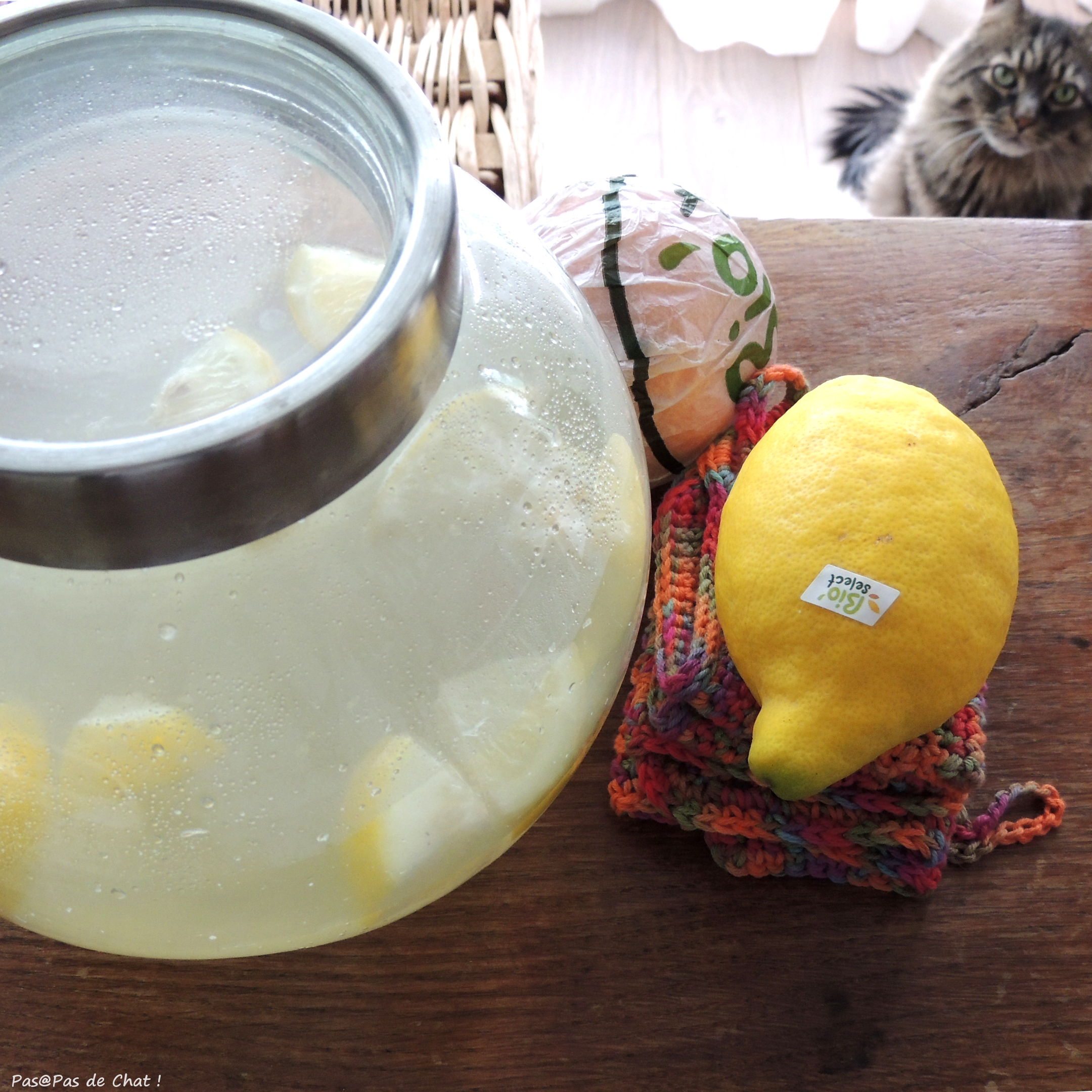 Pour les remercier, je leur ai offert des agrumes bio et des lingettes crochetées.