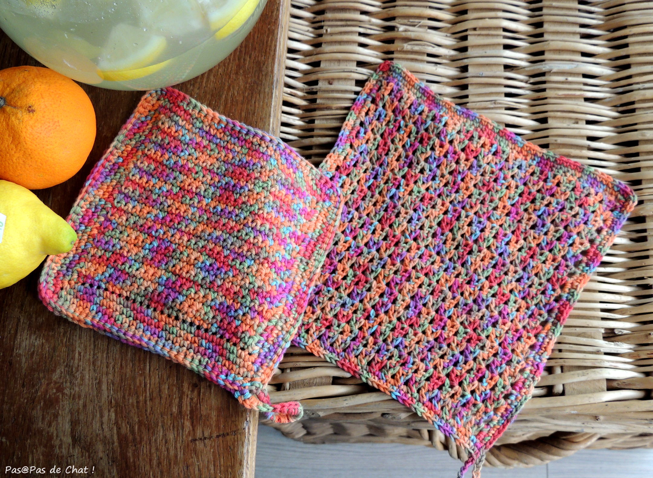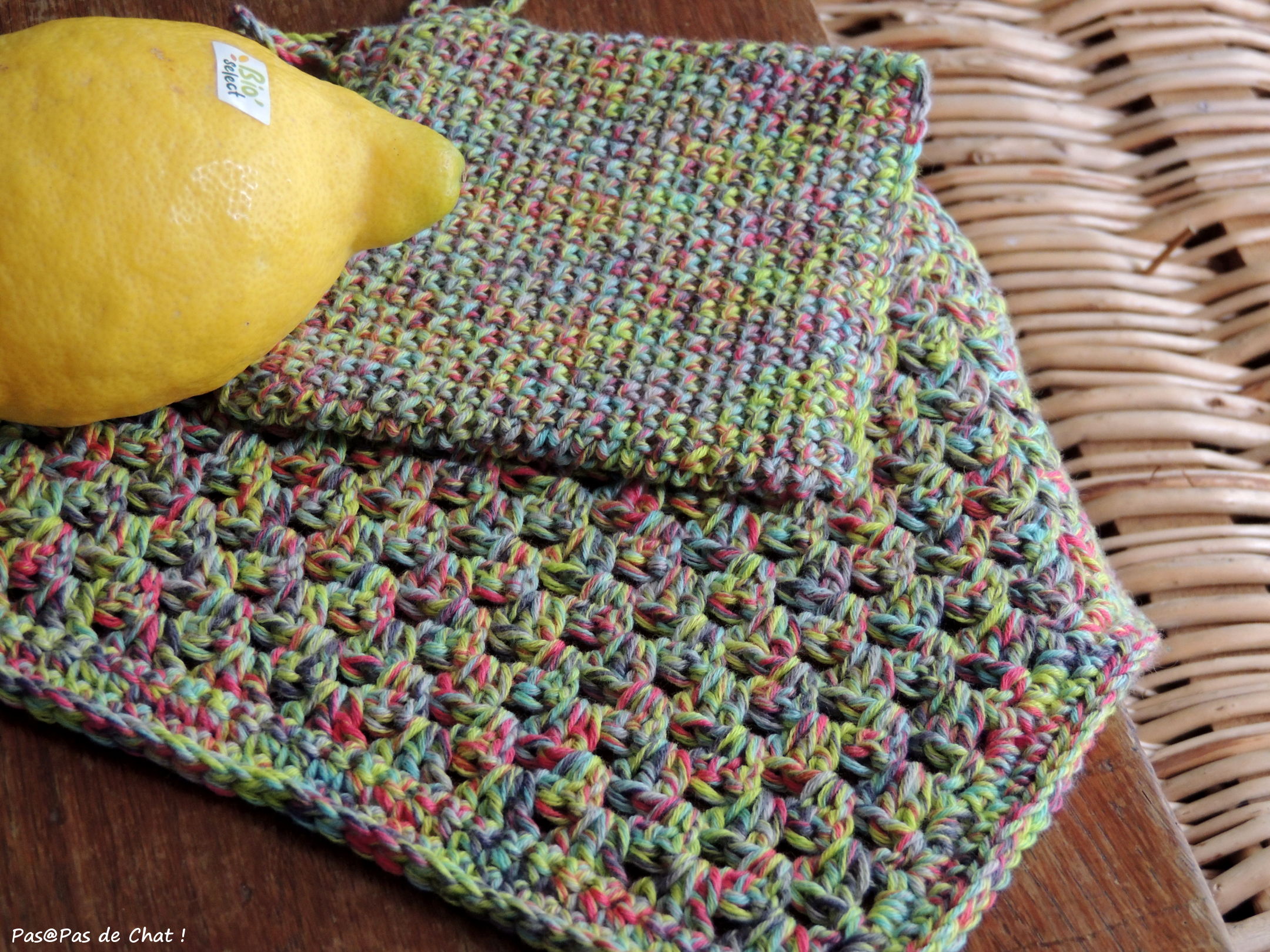 La petite lingette est toute en mailles serrées et la plus grande est crochetée avec le tuto de Thalicréations, ici.