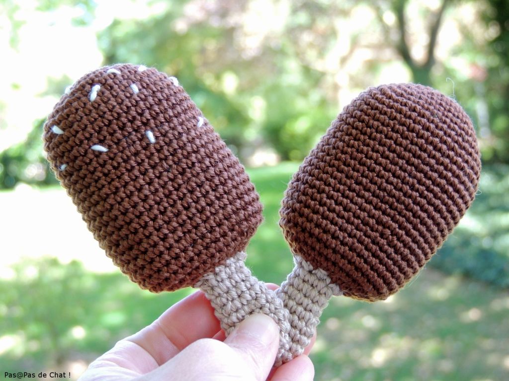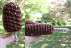 Comme il m’est devenu impossible de ne pas prendre de notes quand je crochète, je partage avec vous le tuto de mon esquimau nappé de chocolat, et du bâtonnet glacé triangulaire.