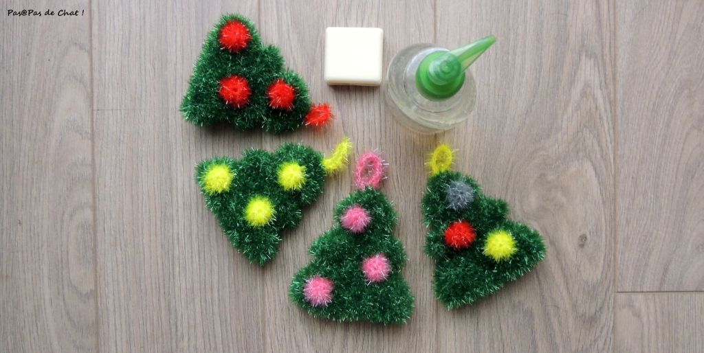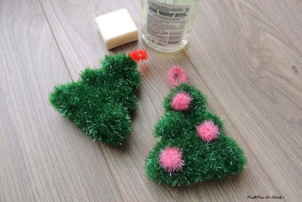 coucou ils sont beaux tes petits sapins , j’ aime beaucoup , moi j’ ai réalisé des petites éponges pour la douche avec un gel douche dessus comme exfoliant c’ est super !!! pour la vaisselle j’ aime moins et le lave vaisselle en a pas besoins lol bisous et joyeuses fêtes de fin d’ année